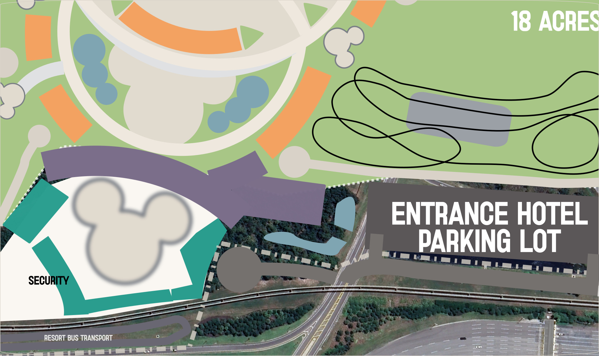 Creating space to accommodate every type of transport on Disney property, builds capacity, and ability for guests to move around as frictionless as possible.