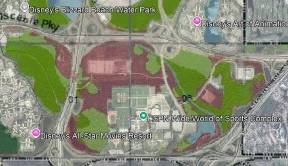 The first location is a very large parcel of land, around 250 acres, attached to ESPN world of Sports, I would argue there is nothing wrong with this location, it is close to a few of the parks, but it is 5 miles from Magic Kingdom. The intention of this is to bring these parks closer together rather than spread their footprint. It also raises the question, what other things could be built here that are more suitable to ESPN World of Sports, be that more resorts or other unknown attraction that supports what already exists?