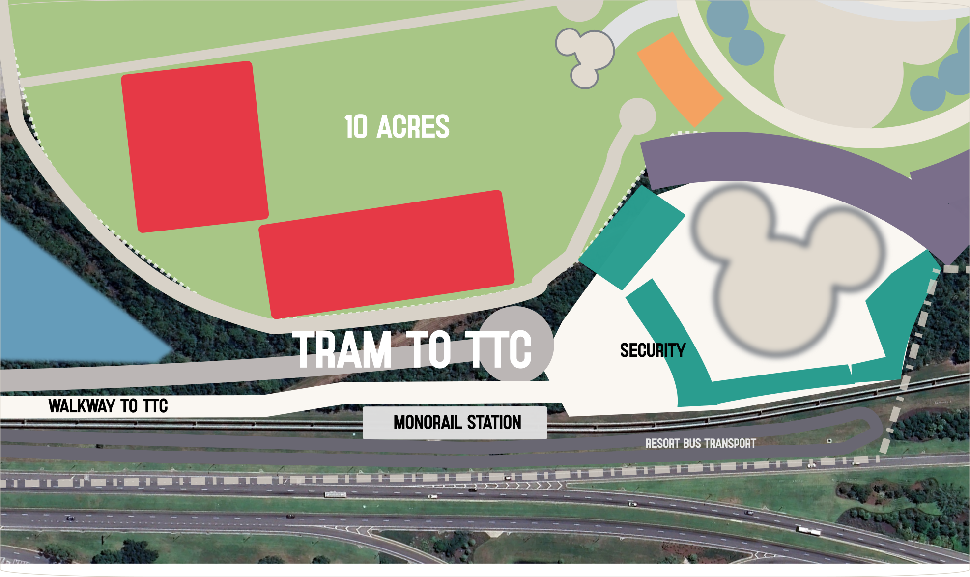 The Parcel is directly east of TTC, the Monorail runs in a nearly straight line along its western edge, it attaches directly to Floridian way and World Drive - do you see where I am going with this?