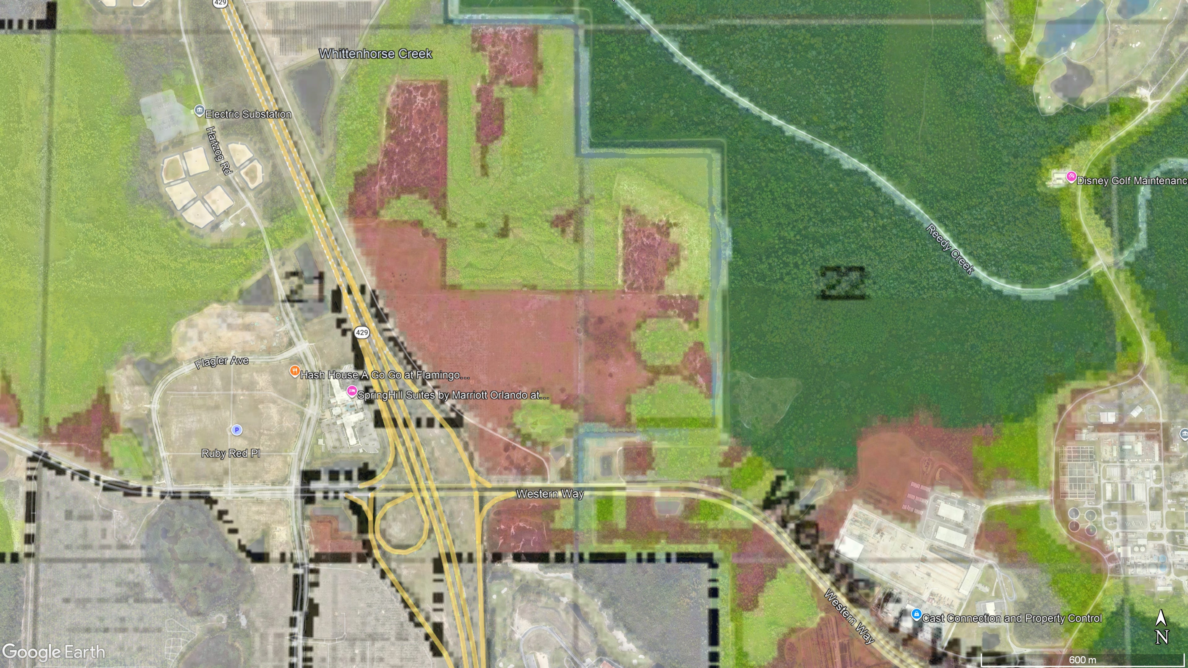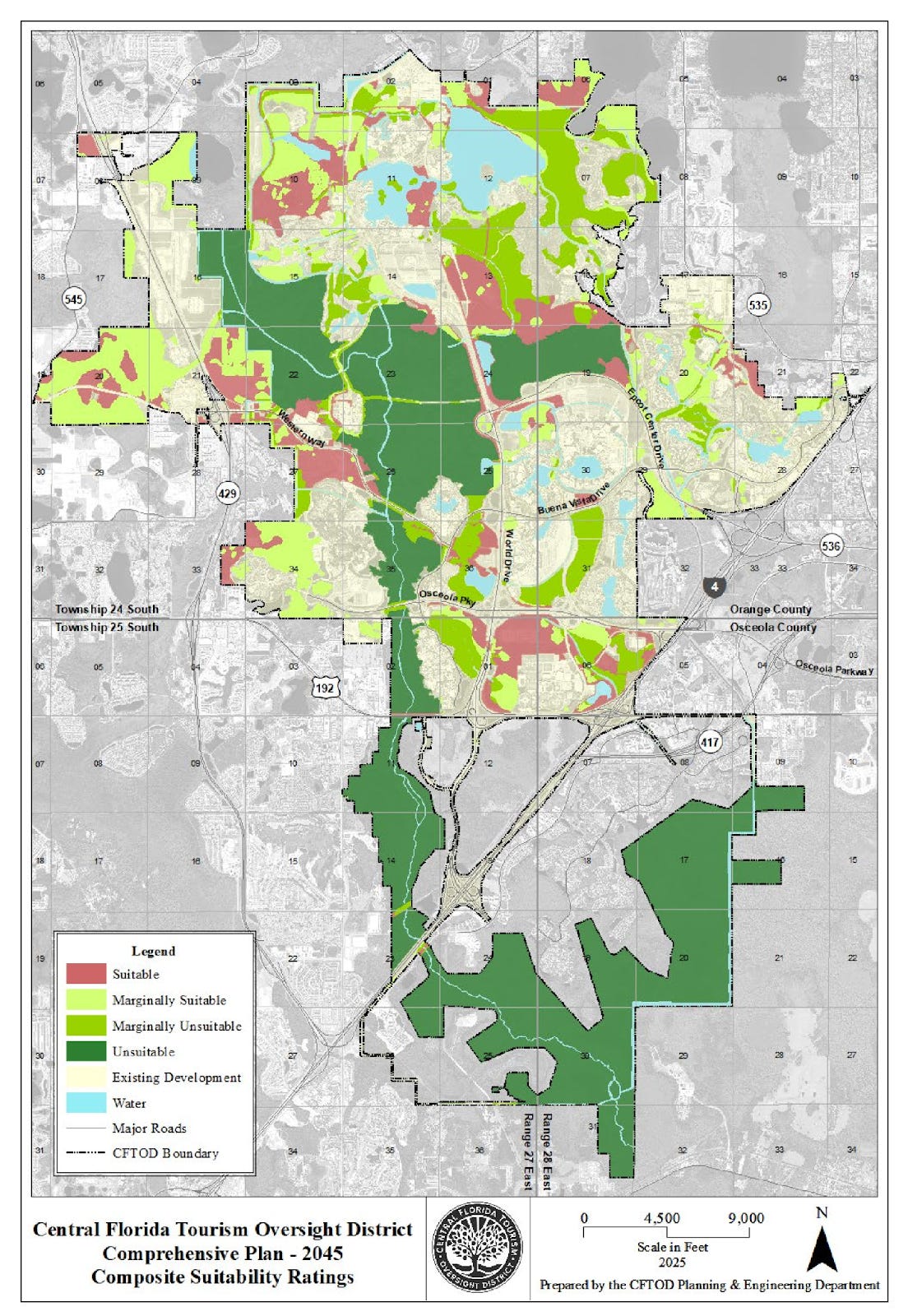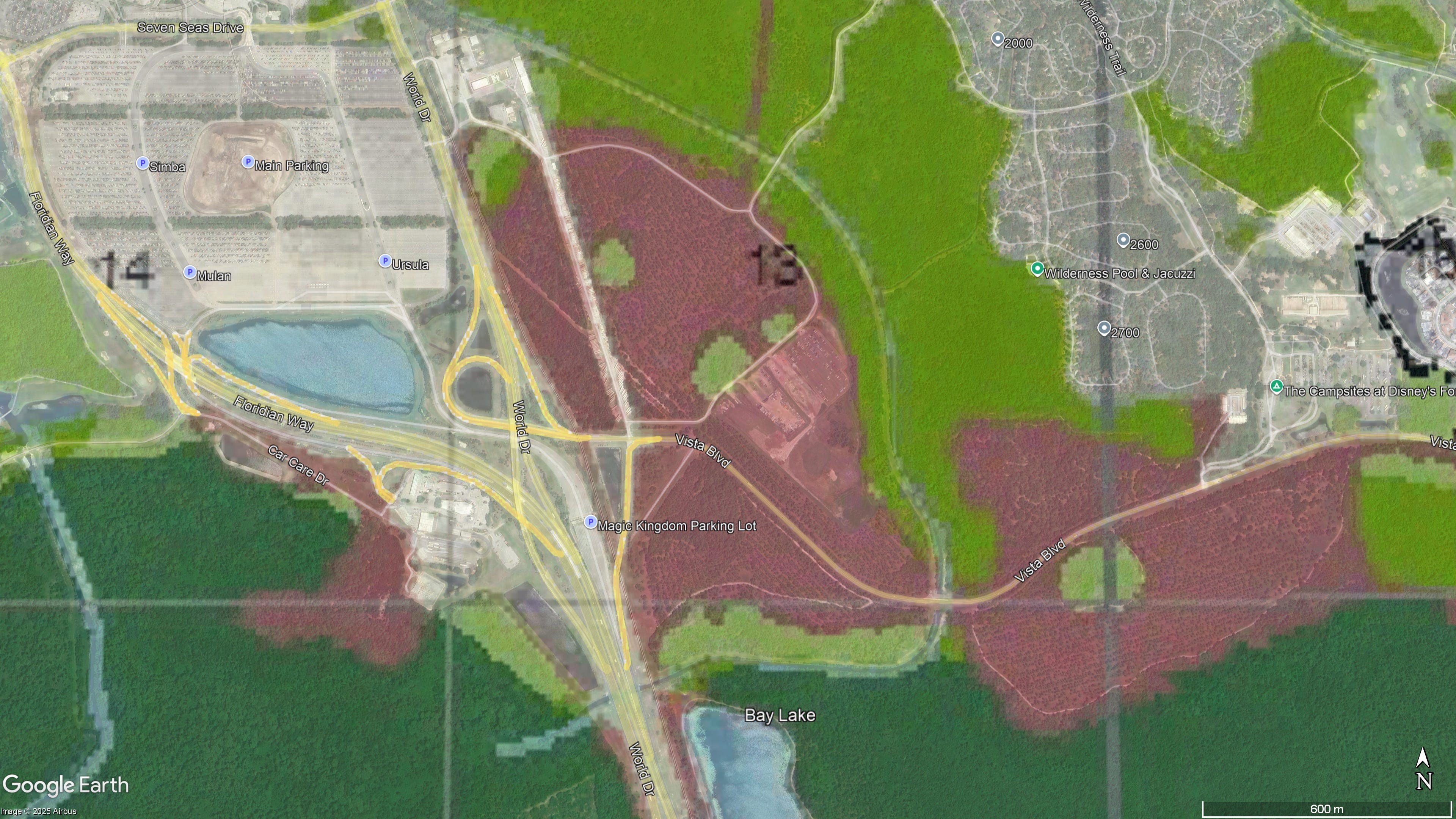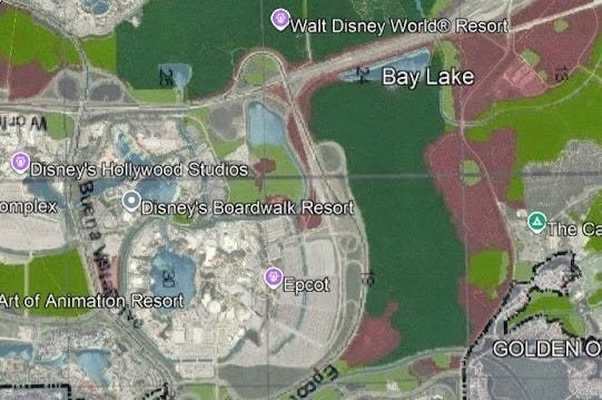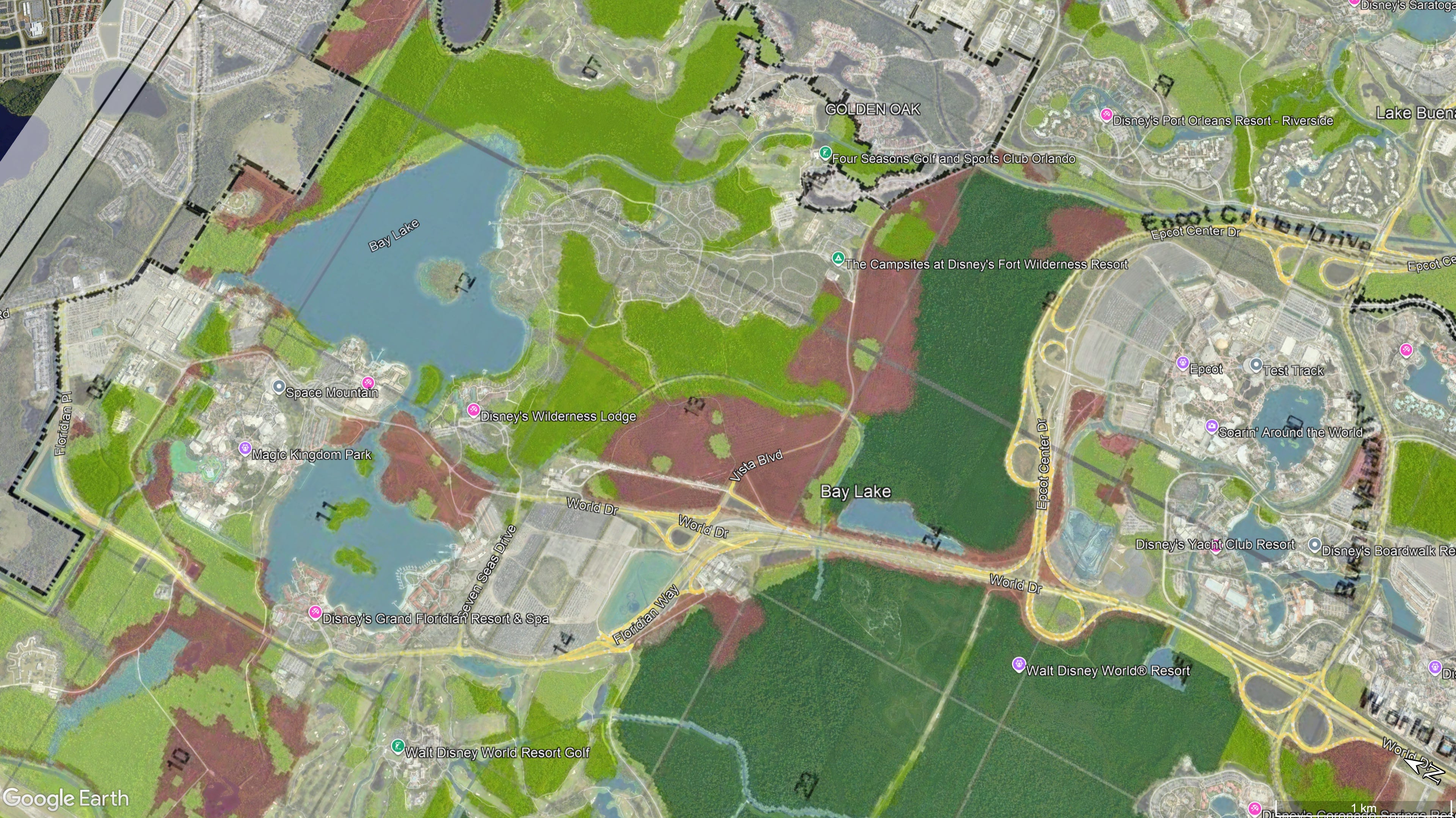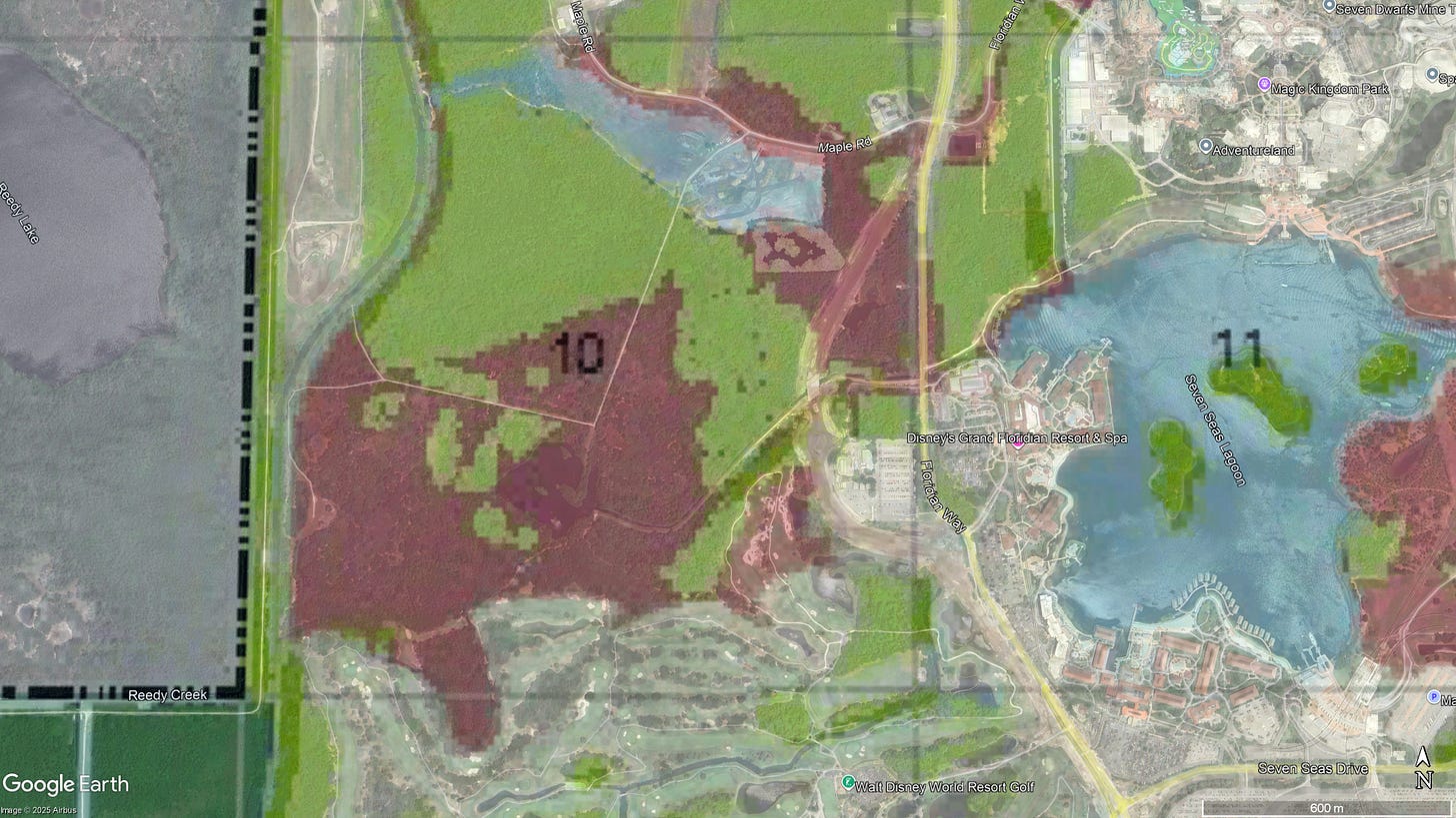 Here is the land suitability map for Disney World: