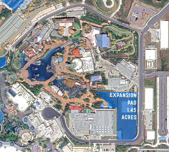 The main takeaway from this is that land is prepped and ready to go from day 1, Disney would only focus their budget on the attraction not the costs attached to compromise as they do currently. It would be a case of converting grass lots or landscaping over to attractions.