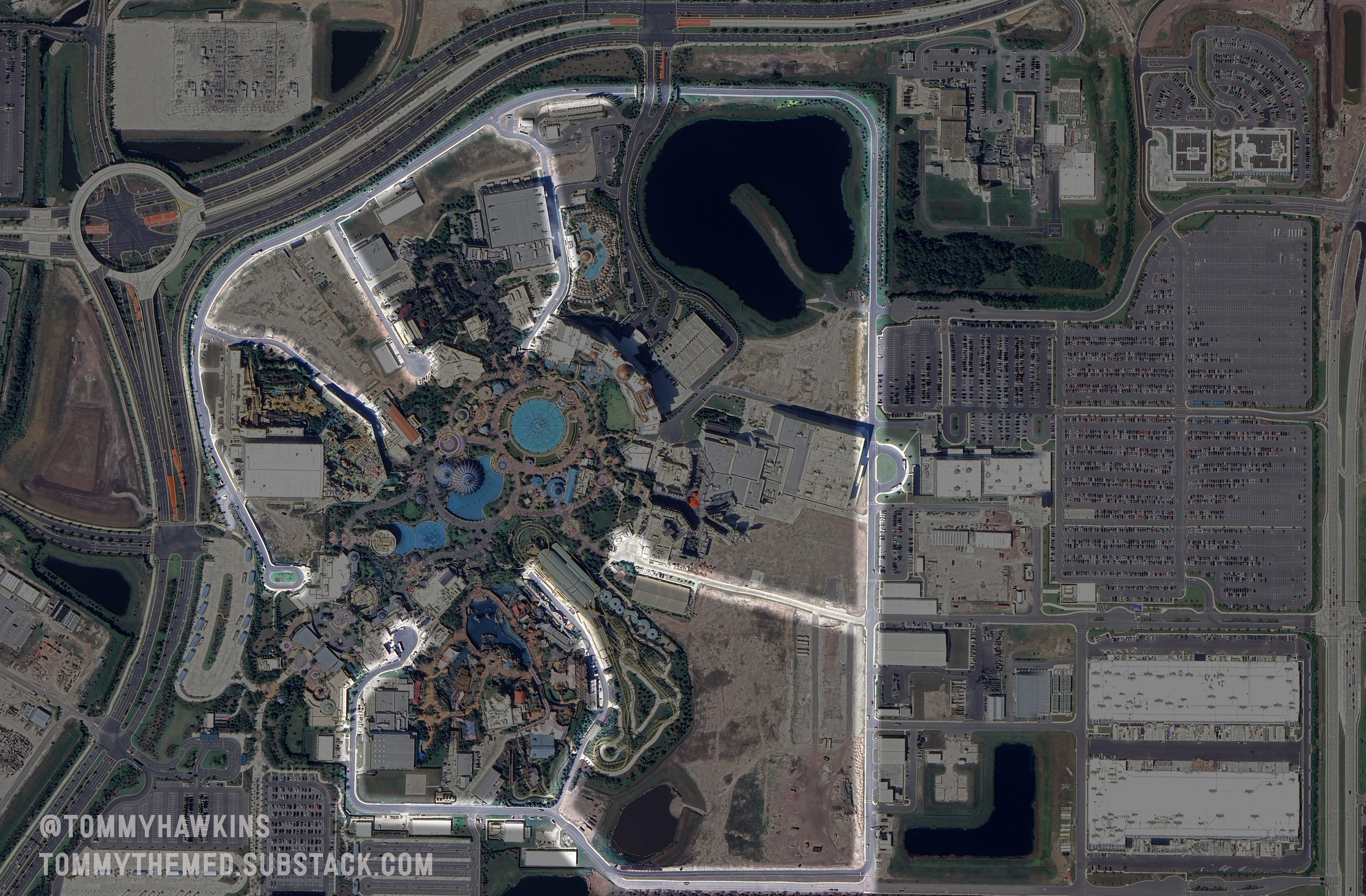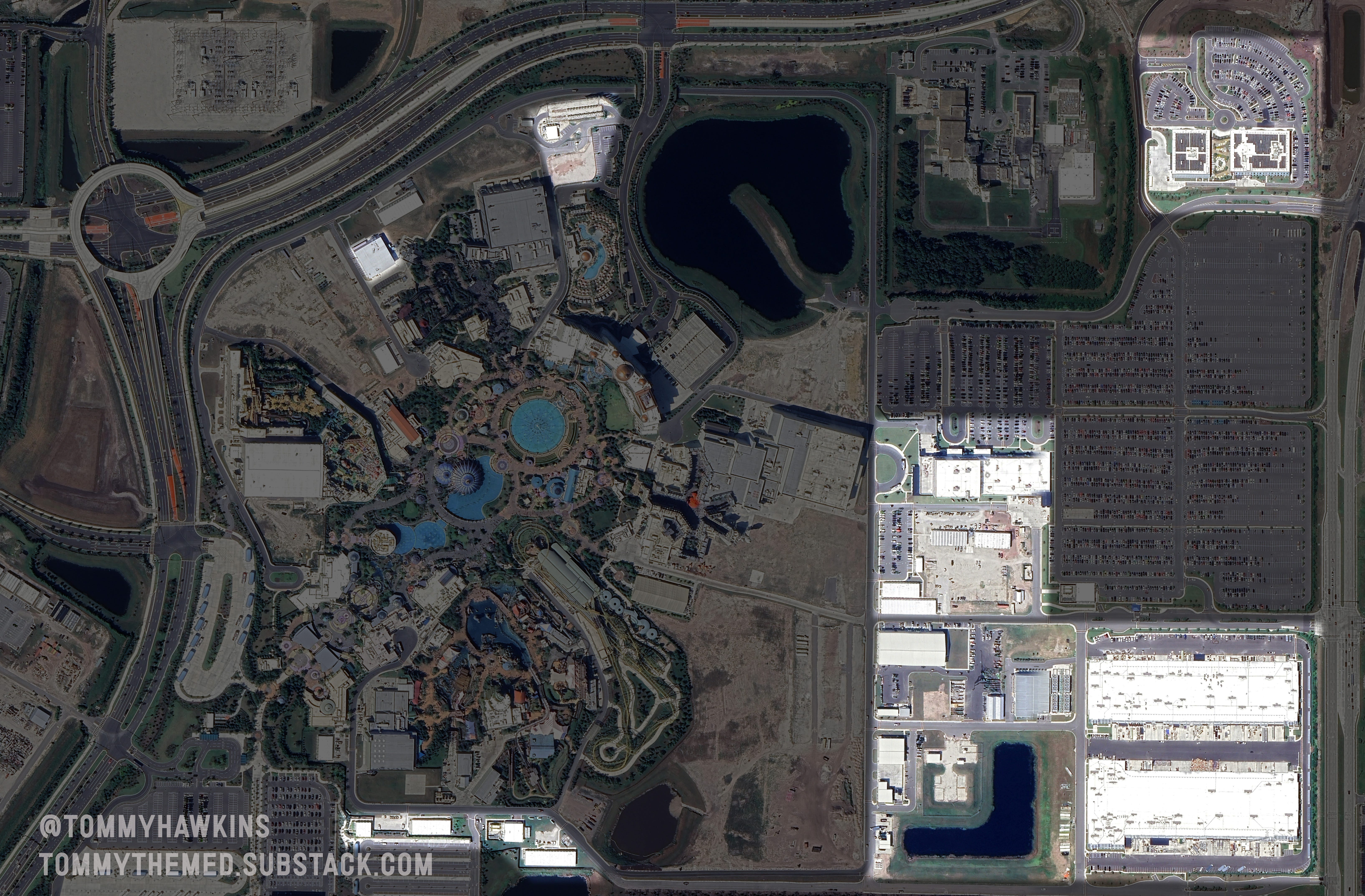 Arguably, this is more about scale than anything else. Epic’s Back of House facilities is 120 acres, separated from the 100+ acres of pure theme park space south.